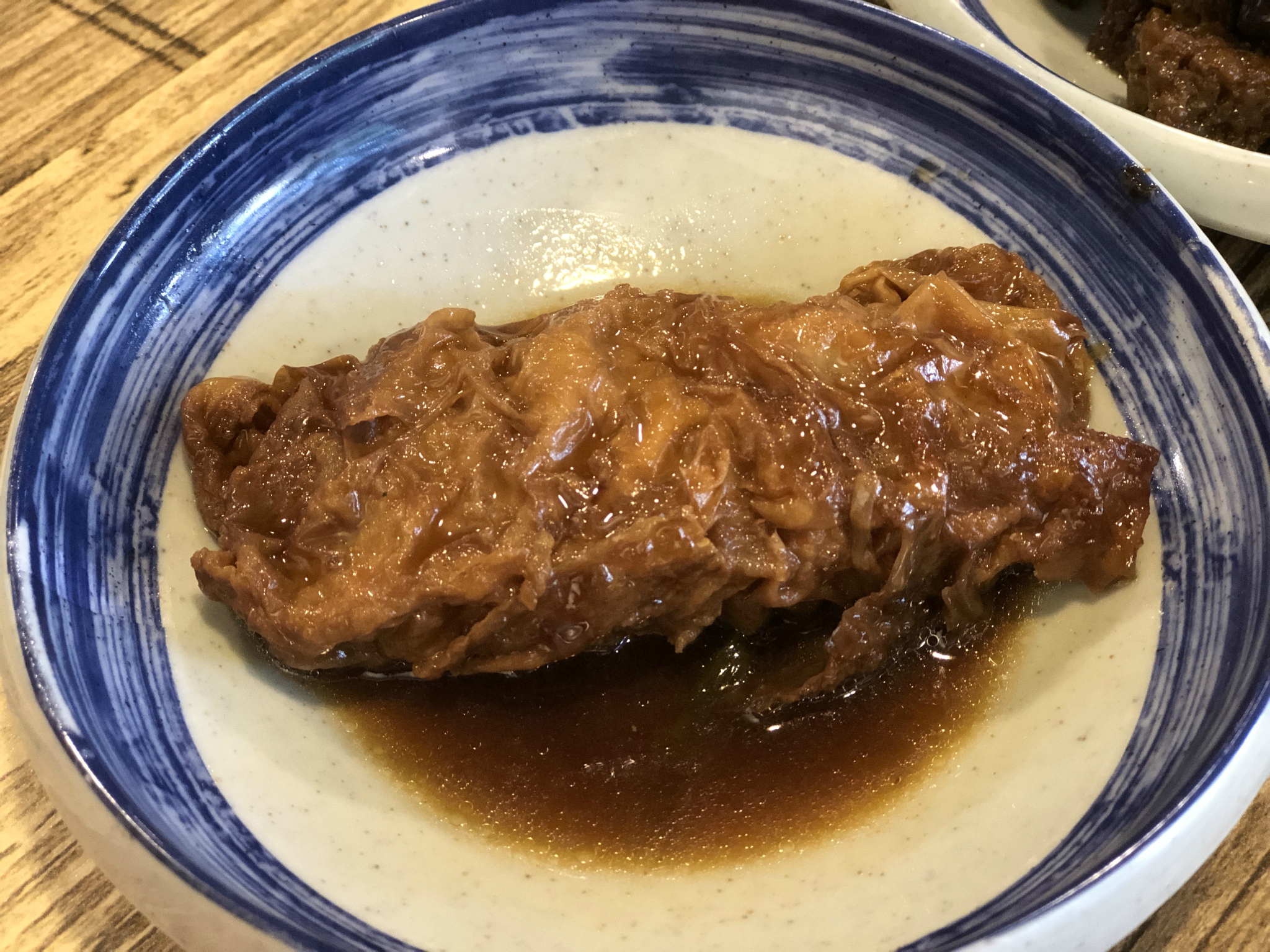 菜品方面,基本是把一些常见的浇头和老上海的特色小吃点了一遍。主食方面点的是葱油拌面,闻上去就特别香,葱油里面带有一点点上海人喜欢的甜味,面也很劲道。配菜方面我就点了很多了,泗喜烤麸、油焖茄子、辣肉、炸猪排的味道都很好,而且还送了一碗冬瓜排骨汤给我,真的是真材实料。价格也不是特别贵,来这家店用餐的人还挺多的,小小店可以吸引周边的那么多人群前来用餐,可见这家店在各方面做的还是挺不错的。
