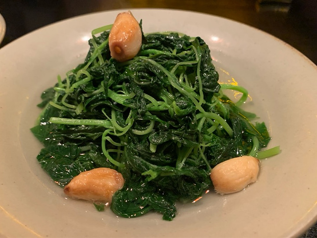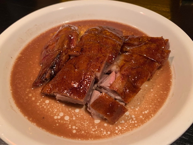 朋友推荐的粤菜馆,真不白来。餐厅在三里屯北区地下一层,不到12点已经需要排位等待1个小时以上。抱着“来都来了”的心态,不管等多久一定要吃到!! 餐厅的光线很温暖,桌子之间的距离也比较合适,我们被安排在大堂最里面的座位,很安静,私密性也很好。 等位需要登记电话,排到了会电话通知,不怕等过了重新排号。服务员小姐姐全程很热情,上菜速度巨快。唯一不足是我们的位置离服务员比较远,如果有个呼叫铃就更好了。 「三清潭烧鹅」不愧是招牌中的招牌,点烧鹅时可以选择上半身或下半身,肥瘦也是可以选择的。烧鹅皮脆肉嫩,肥而不腻,不蘸酱也不会不好吃,当然蘸酱更能提升烧鹅鲜美的口味。总之就是好吃好吃好吃,强烈推荐! 「鲍汁凤爪」也是必点菜之一,凤爪炖得非常软烂,入口即化,鲍汁包裹的凤爪很入味,花生是点睛之笔,不知不觉就光盘了,剩下的汤汁适合来一碗白饭拌着吃。360度无死角的好吃,强烈推荐! 「秘制味菜炒猪肚」让人胃口大开的不是猪肚有多好吃,而是作为配菜的味菜(好像就是大头菜??)咸味正好,是脆爽的口感。作为主角的猪肚却有些味道,没有处理好。 「黑椒葱爆牛柳粒」牛肉是真的好,汁多肉嫩,但分量也是真的少,198一份性价比太低了。 「豉汁蒸排骨」比较中规中矩,不惊艳但也算好吃。 「鲜虾豆苗饺」将豆苗和虾融合,皮薄肉厚,咸鲜口味。一份是三个,人多可以按个数点。 「上汤蒜子泡苋菜」是我吃过的粤菜馆里最好吃的素菜了,很难得有餐厅能把蔬菜做得如此清淡却又不失美味,苋菜很嫩,化渣也不会塞牙。 「瑶柱蛋白炒饭」米饭粒粒可见,有嚼劲却不太硬,油盐用得都不多,是清淡的炒饭。 所有菜全部被吃光,连一粒米都不剩,吃完有种意犹未尽的快感,可以排在我心目中北京粤菜第一位。