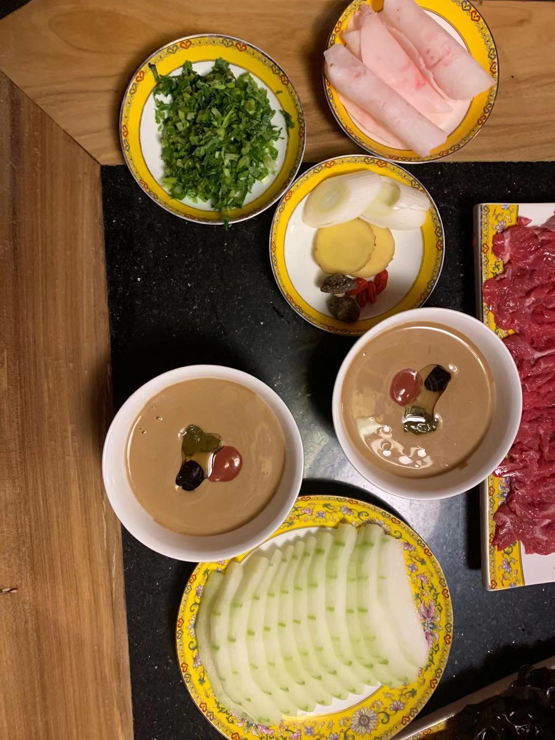 鸳鸯锅底,炭火的就是好吃,清汤部分锅底有放羊尾油,很香。辣锅的部分味道也很好,辣度合适,我对小料有要求,他家的超级正宗。自家百天羊,特别鲜嫩,煮15秒,相对比较瘦,不柴,鲜上脑也特别好吃,肉量很足,手工虾滑虾肉新鲜,大颗粒,很不错