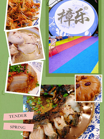 樟乐茶庄·青瓷 📍地址:杭州市西湖区梅灵南路梅家坞91号(进停车场右边) ⏲️营业时间:09:00~21:00 🚏交通:公交103路,121路,324路,1314路梅家坞站 🏮 环境:这家店在梅家坞的停车场旁边,一栋三层农居房,院子里的地还弄成了🌈彩虹的颜色,让人眼前一亮,说明老板的心态还是挺年轻的,周边绿化空气都很不错,楼上有包厢可以供多人聚餐! 干菜蒸鳗鱼2⃣️3⃣️8⃣️RMB,用的是比较大条的江鳗,用梅干菜蒸是老杭帮的做法,梅干菜的香味可以有效的吸收了鳗鱼的油脂,让鳗鱼吃起来不会腻,肉质非常的细嫩而且没有腥味!值得推荐! 茶香虾9⃣️8⃣️RMB,用了自家种的龙井茶叶炸制后与二次复炸的河虾一起炒制撒上椒盐,酥香提味适合配点小酒🍶 🐔 鸡汤煲1⃣️2⃣️8⃣️RMB,这道菜基本是周边所有的饭店都必备的一道菜,本地鸡慢火炖煮,金黄的油脂会漂浮在汤上面,油很清喝起来鲜味十足不会油腻,鸡肉酥烂脱骨,适合聚餐大家一起分享! 🐂 荷花牛肉5⃣️8⃣️RMB,这种做法类似于金丽衢一带的名小吃“葱花肉”的做法,外皮炸的很酥脆,里面猪肉葱花改成了牛肉,味道还不错,如果加一个可以蘸的酱汁口感会更丰富! 🔈 服务:他家不管老板还是店员态度都很不错,刚到门口就非常热情的招呼,还会耐心介绍他家的菜品仔细询问有无忌口的东西! 💰人均:1⃣️2⃣️0⃣️RMB 👉🏻推荐指数:🌟🌟🌟🌟🌟