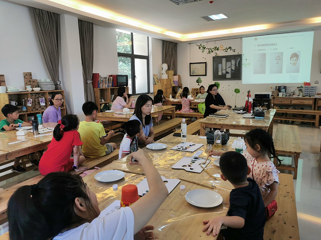 太开心了又一次到南昌瓷板画艺术博物馆游玩,报名带我家孩子参加社教课,体验感很不错哟~讲解员小姑娘超美亲和力也很足,很有礼貌,体验区那边的指导老师也很赞,一开始担心孩子不会画,经过老师指点后后来出乎我的意料的好👍👍👍 地理位置在南昌市红谷滩区新区丰和南大道520号,有个停车场超级好停车,不开车的话可以做地铁2号线到3号出口100米就到了~ 一上来有个很大的八卦广场和超级大的大鼎,非常震撼。展厅里面有很多的展品,据说都是画家手绘的,每一张作品都差不不多用时一个时间完成。参观完展厅后整个园子可以逛逛,拍拍照片啥的,景色很不错哦~ 最后提醒大家这里体验瓷板画最好是要早点到哦(最少都要画一小时呢),体验开放时间是9:30—11:30,下午2:30—4:30