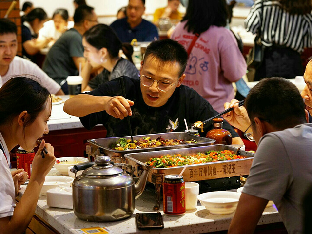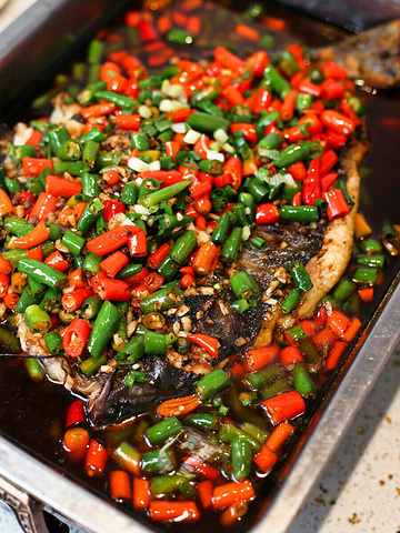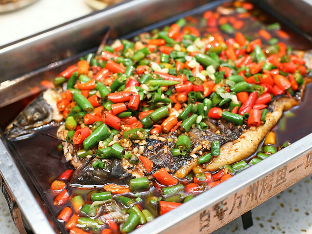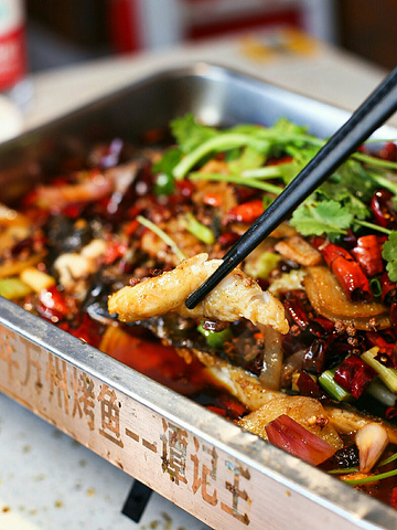 17年的光阴可以改变什么?青葱少年向丝竹中年的蜕变;光阴荏苒,岁月如梭,光阴改变的东西实在太多,唯一不变的却是17年里味蕾的记忆—两面金黄的烤鱼,各种酱料匀称的铺在鱼身上,鲜亮的色泽让人食指大动。 12种味道的烤鱼每一款都是一道色香味俱全的美味佳肴,作为招牌【香辣烤鱼】自然拔得头筹。魔芋、藕丁、土豆片加上辣椒、花椒的洗礼,在炭火的不断加持下,散发着诱人的香气。鱼肉吸收了醇厚的汤汁,鱼皮酥脆,鱼肉香嫩,完美的结合起来,简直是人间佳品。【蒜香烤鱼】热油将蒜末独特的香味激发出来,鱼身上铺得满满一层,鱼肉吸收了蒜末的香气,口感独特,夹上一口,快活似神仙。品尝完鱼肉,小二再端来一盆热气腾腾的面,尽数倒入盘中,绝对又是一道不可错过的美味佳肴。如果觉得香辣口感还不够满足味蕾,【双椒烤鱼】绝对能满足重口爱好者的需求,双色辣椒满满当当的铺满在烤鱼之上,鱼肉吸收了辣椒和辣油的味道,双重刺激,再搭上一口浓郁蒜香的面条,嗯!味道不摆了! 中式装修风格简约却不简单,店内一角盛开的樱花彰显出老板娘风韵犹存的少女心,活鱼点杀,将新鲜定格在最美味的食刻。17年的坚守,味道一如既往的好吃,这家店就连在下这种不爱吃鱼的人都啧啧称奇。