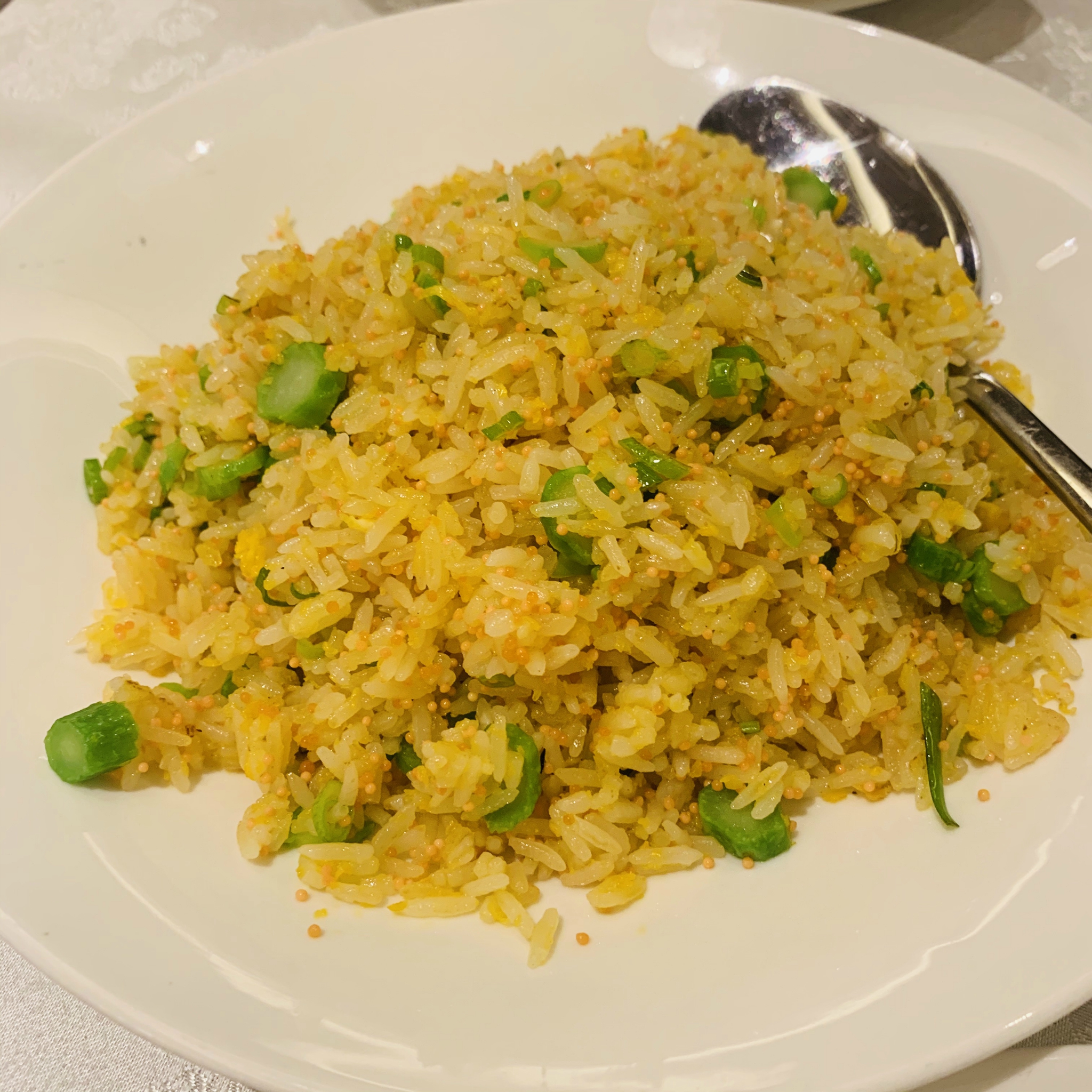【蟹籽炒丝苗饭】炒饭够硬,有嚼劲,还有点蟹籽挺过瘾,味道偏淡一点,但也挺好吃