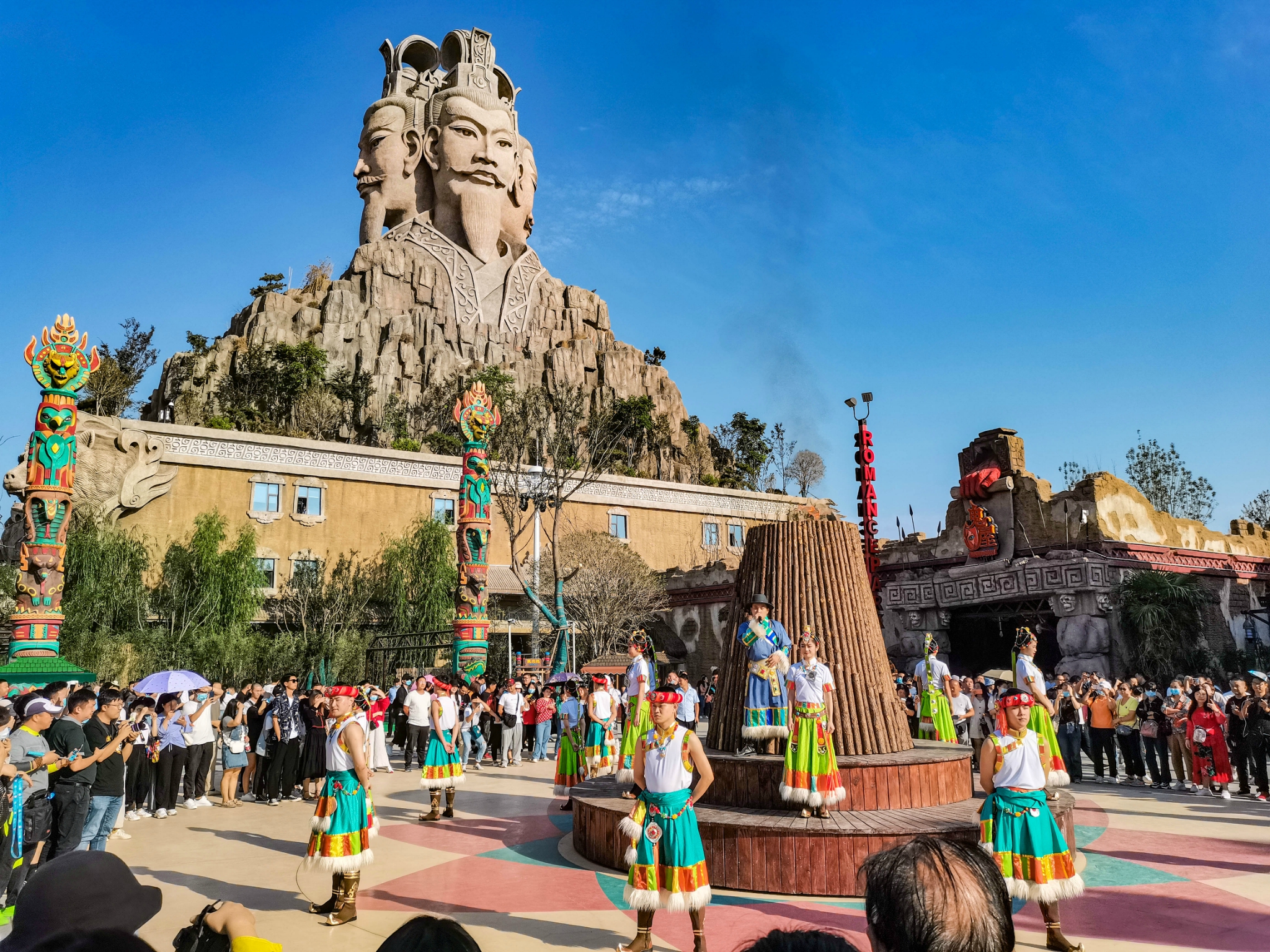 来到黄帝千古情景区入口,隔了老远老远就看到了标志性的人文始祖——黄帝的雕像,只见他目视远方,威严而又肃穆。
