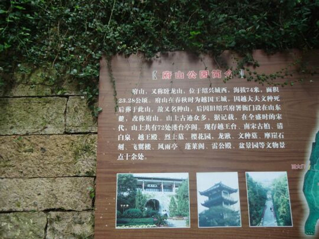 府山也叫卧龙山,不是很高,门票学生价5元,挺便宜的。我是大热天的去的,在里面爬山绕来绕去的走了差不多四个小时左右吧。里面有很多古迹景点,比如说文种墓,风雨亭,越王台,越王楼,南宋龙柏,古戏台子,烈士墓,雷公殿等等,值得一去。