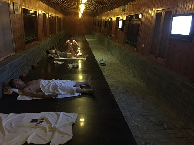晚上泡路灯不够亮,应该带个手电筒,可以泡的池子不多,高温区水池温度还算合适,石板浴躺躺还不错