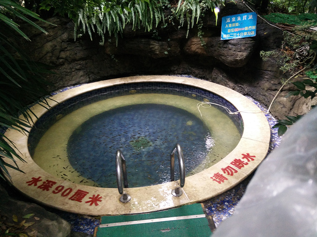 直接在去哪儿网上订的(有优惠~票价78元,然后可以返现15元),马上就可以去前台取票了(押金100,出去的时候马上就退回了)。去的时候是大概下午五点半到六点之间。那时候,都没什么人,不过到了晚上八九点的时候人就陆陆续续地好多了。特别是室内温泉,一个人都没有,就我一个人泡了一会。然后又跑到室外去,水还是满干净的。而且有好多救生员在,这个很安全放心。会有送一条毛巾,让你用。