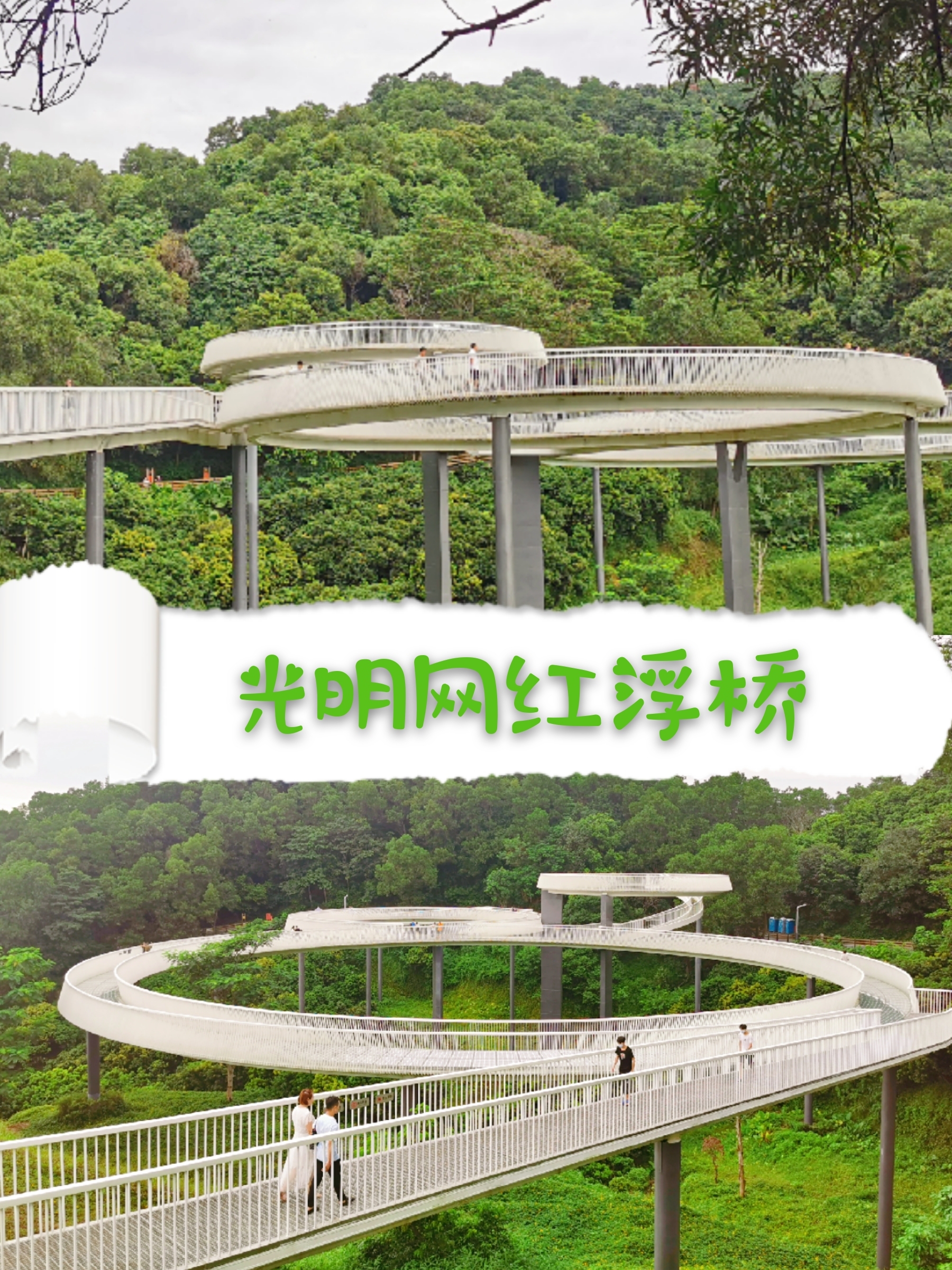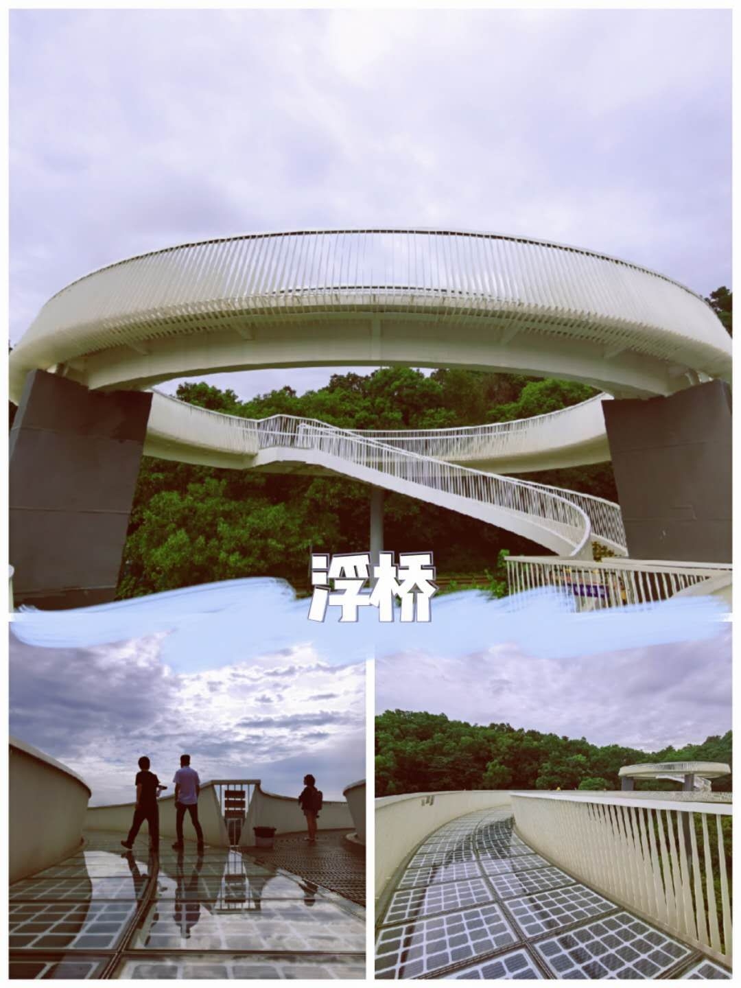 🌈【浮桥】大顶岭绿道三桥中知名度最高、最为震撼的一个景观桥,也是目前唯一开放的一座桥,由3个大小不一的圆形观景台组成,远远望去浮桥宛如漂浮在空中。行走在浮桥之上视野开阔,风景也格外透亮。
