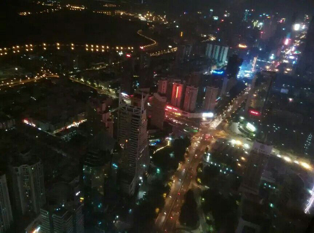 在去哪儿上订票要提前要两小时后才能进入!在前台租望远镜是30元!然后上去上面有些东西需要投币才能使用,上面的投币的望远镜不建议用,蒙乎乎的!反正我个人不喜欢!整体的服务态度还是不错的,上面很小,就围一个圈逛,看了夜景就完了夜景还不错,大概15分钟游览结束!还是南宁的地王大厦好些,有透明的玻璃直接看到底,吓死宝宝,深圳地王我去刚好是国庆,人多的要死,票价也涨了!