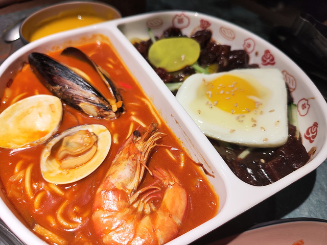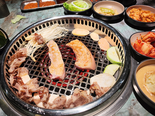 福来里街位置,也就是cgv电影院旁边的区域,之前这个区域没开放,现在开了好多饭店啊。这家韩料店刚开业的,周末来的,来晚的话还得等位置。服务员好像业务还不太熟练,吃饭感觉好多服务员围着,可能有的是在学习吧。