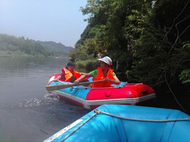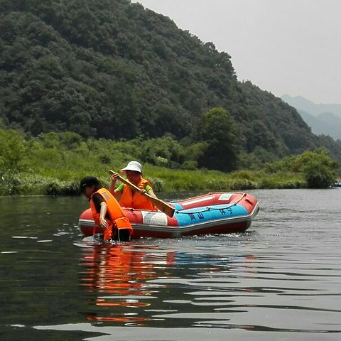 其实我们是本地人,买票也很便宜,为了省事而网上订票,取票挺方便的。公厕的卫生很差。可惜近期高温,河水很浅,不是很尽兴,不过,一家人第一次玩漂流,还是挺开心的。从售票处到漂流出发点,两公里的路程,三个人30块的所谓的景区公交,未免那个了吧?