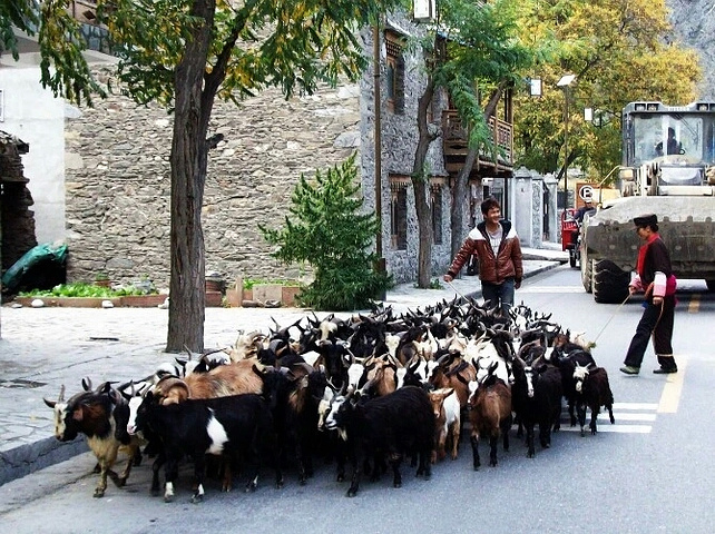 钻出果林便是居民区了,幢幢2、3层的羌族砖石楼房错落在树木花草中(没有高大碉楼),潺潺山溪崎岖流淌,环境优美恬静,颇具生活情趣。总感觉农村人比咱城市人更懂得利用与享受自然之美,当然也与生活环境有关了,如果城市也有此等自然资源,估计我们的生活品味也亦然。