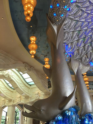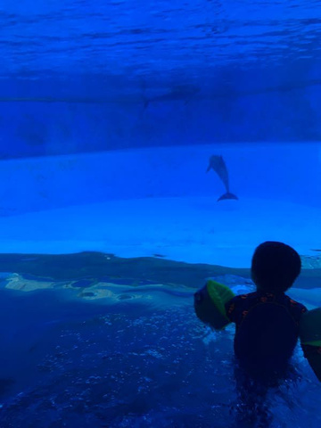 珠海横琴湾水世界没有广州的水上乐园大,但比较适合小朋友玩,水大多不深,有室外和室内两个场所,还有沙滩。救生员比较多,位置也很显眼。去的时候天气还比较好,太阳不大,漂流玩了六次,小朋友在室外玩得非常愉快。海豚池估计是一大特色,像在和海豚一起游泳,感觉海豚还在表演,抱个球游来游去的。室内有滑道,有惊险点的,也有适合小朋友玩的。这个水世界主要是买自助餐送的,由于在水世界时间玩的比较晚,晚餐去自助餐也是随便吃了点,感觉是价格没吃回来啊,呵呵。小朋友直接睡着,一点也没吃啊!估计中午吃自助餐划算些。不过,总体说来,小朋友玩水最开心了!