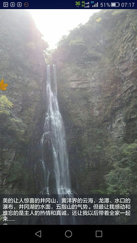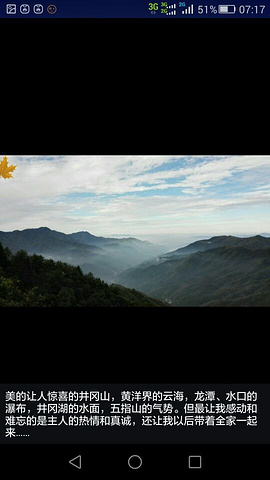游客2017-11-14美得让人惊喜的井冈山,黄洋界的云海,龙潭、水口的瀑布,井冈湖的水面,五指山的雄伟美得让人惊喜的井冈山,黄洋界的云海,龙潭、水口的瀑布,井冈湖的水面,五指山的雄伟。最让人感动的是主人的热情和真诚,让人难忘