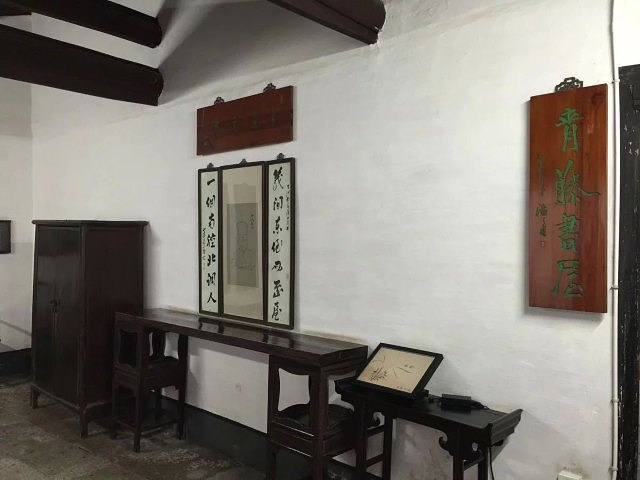 青藤书屋原名“榴花书屋”,距离鲁迅故居不远,但要清静许多。这里是我国古代十大画家之一的徐渭诞生和读书的地方,来到这里的游人,无不为他穷困潦倒,又狂放不羁,不畏权势的一生感慨万千。 进门是一面山墙,上书“自在岩”三个字。书屋坐北朝南,共两室。前室朝南,窗外有小天井,西边栽有青藤一裸;后室朝北,现辟为徐渭文物陈列室。这里不仅可以看到徐渭的部分书画作品,还能了解他一生的坎坷遭遇。门前的对联上写着“几间东倒西歪屋,一个南腔北调人”,倒是这个伟大书画家的形象写照。