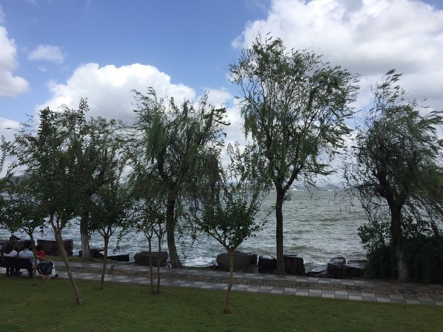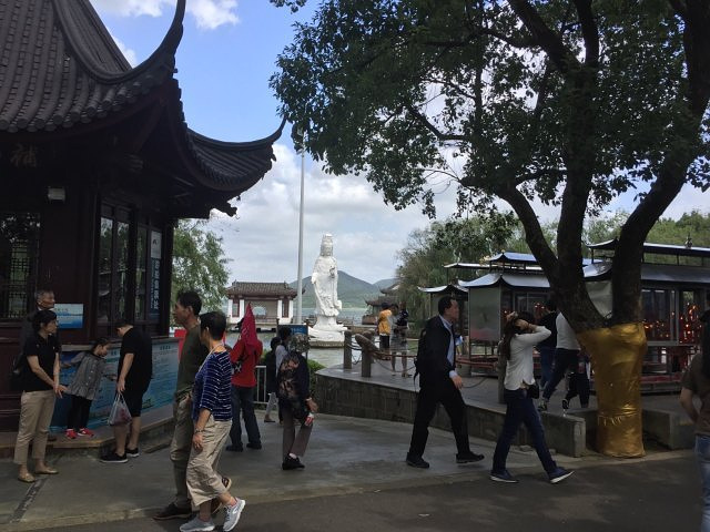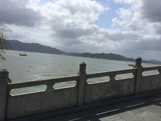 气候凉爽的10月,走在湖堤岸边,欣赏东钱湖美景,拜拜观音,心情放松。