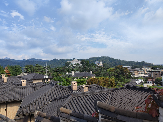 应该是叫北村工艺博物馆吧,总之是需要花钱的,其实我们进去也主要是走累了想歇歇,6000韩元每个人的门票,但是可以送一杯咖啡或茶,要拿铁的话还得另外加1000韩元,也是醉了。这里其实主要是风景好,在北村的高处,可以看北村韩屋村全貌。