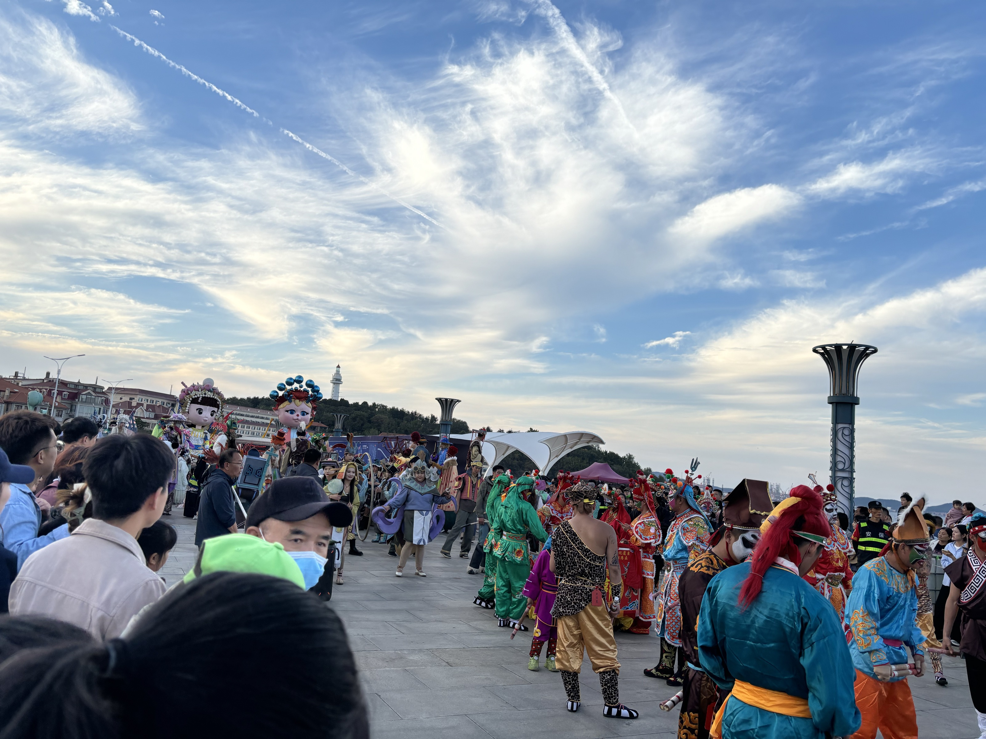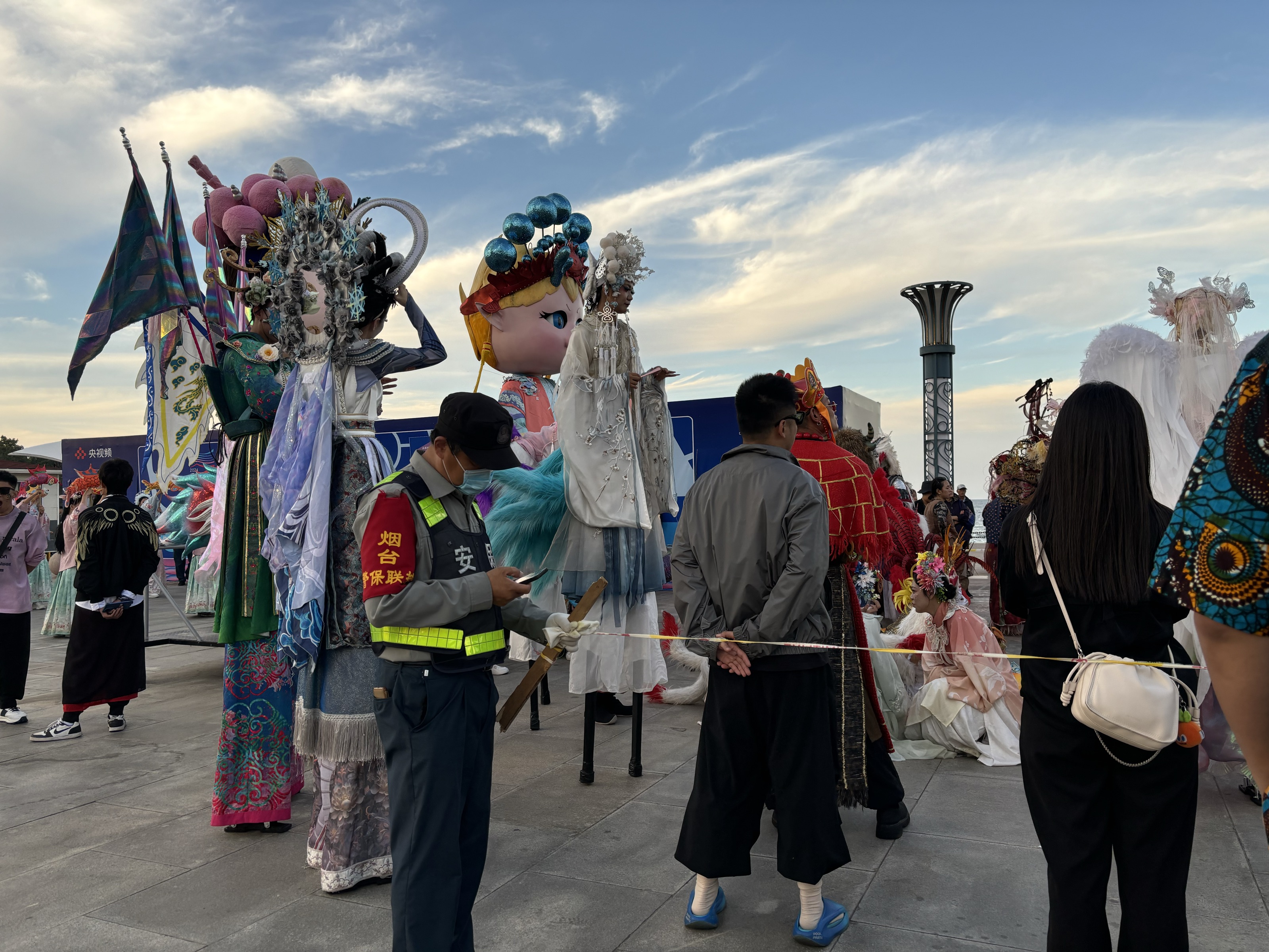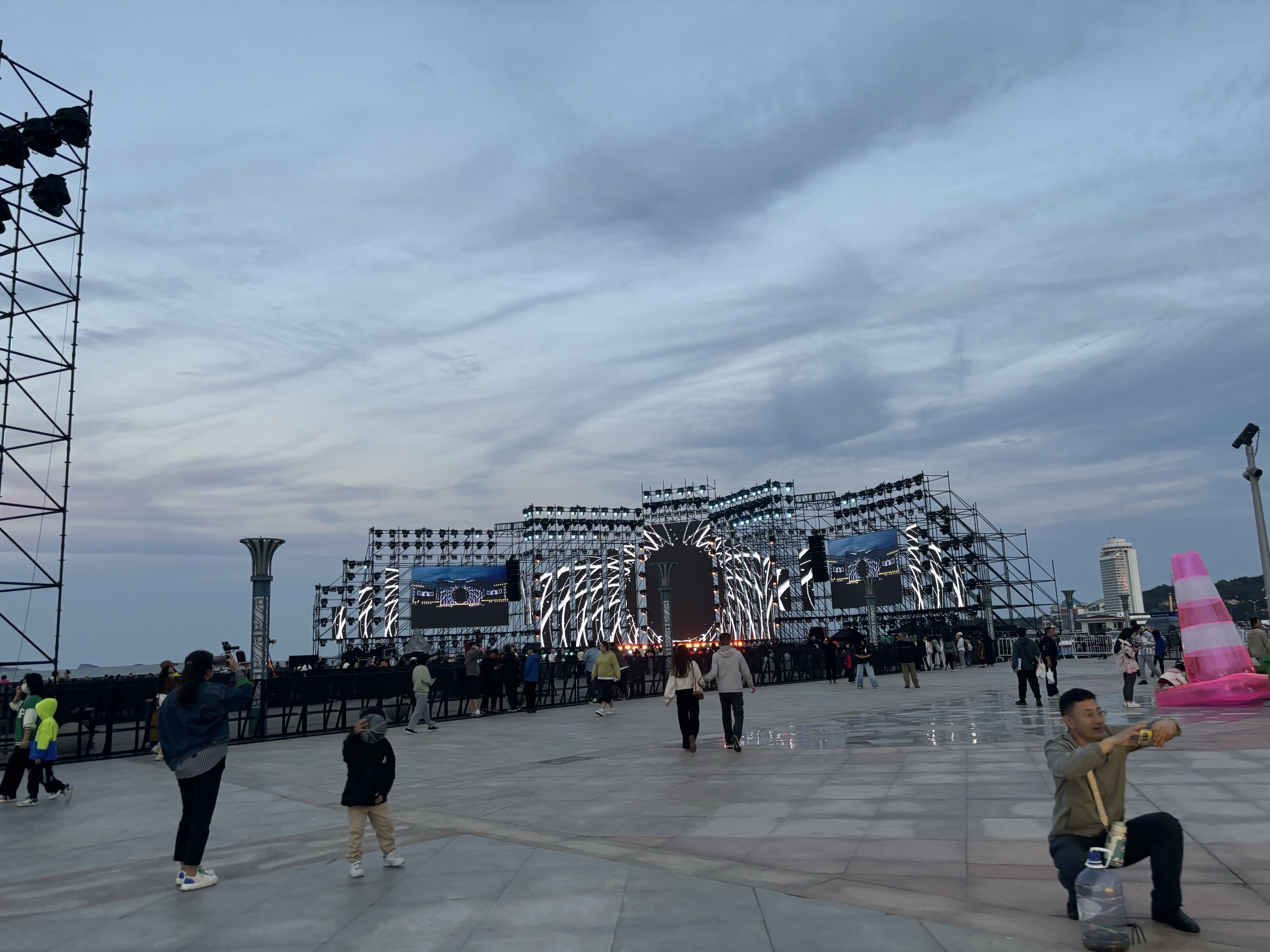 出来张裕博物馆以后往海边走就快到了滨海广场,很巧的是当时正赶上了有活动,还有游行,还有一些表演什么的,还有一个非常大的演唱会的一个场地,后面在抖音上看到是有很多乐队啊,歌手啊,过来唱歌