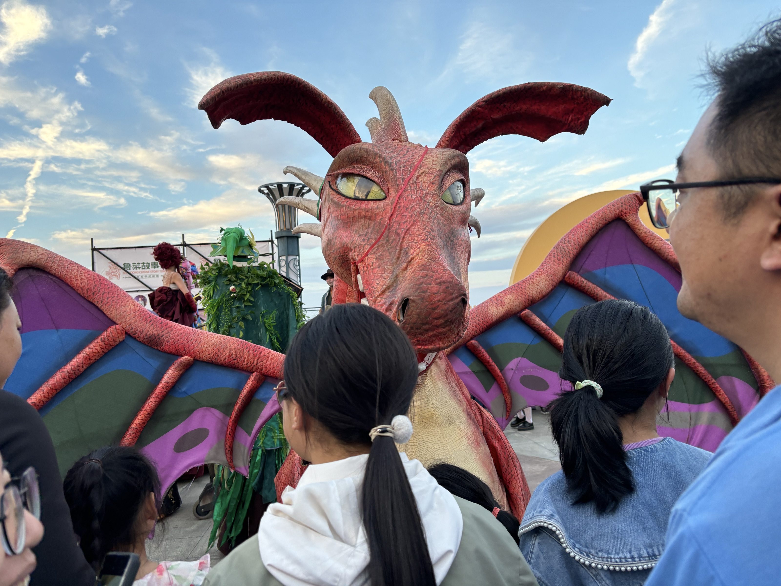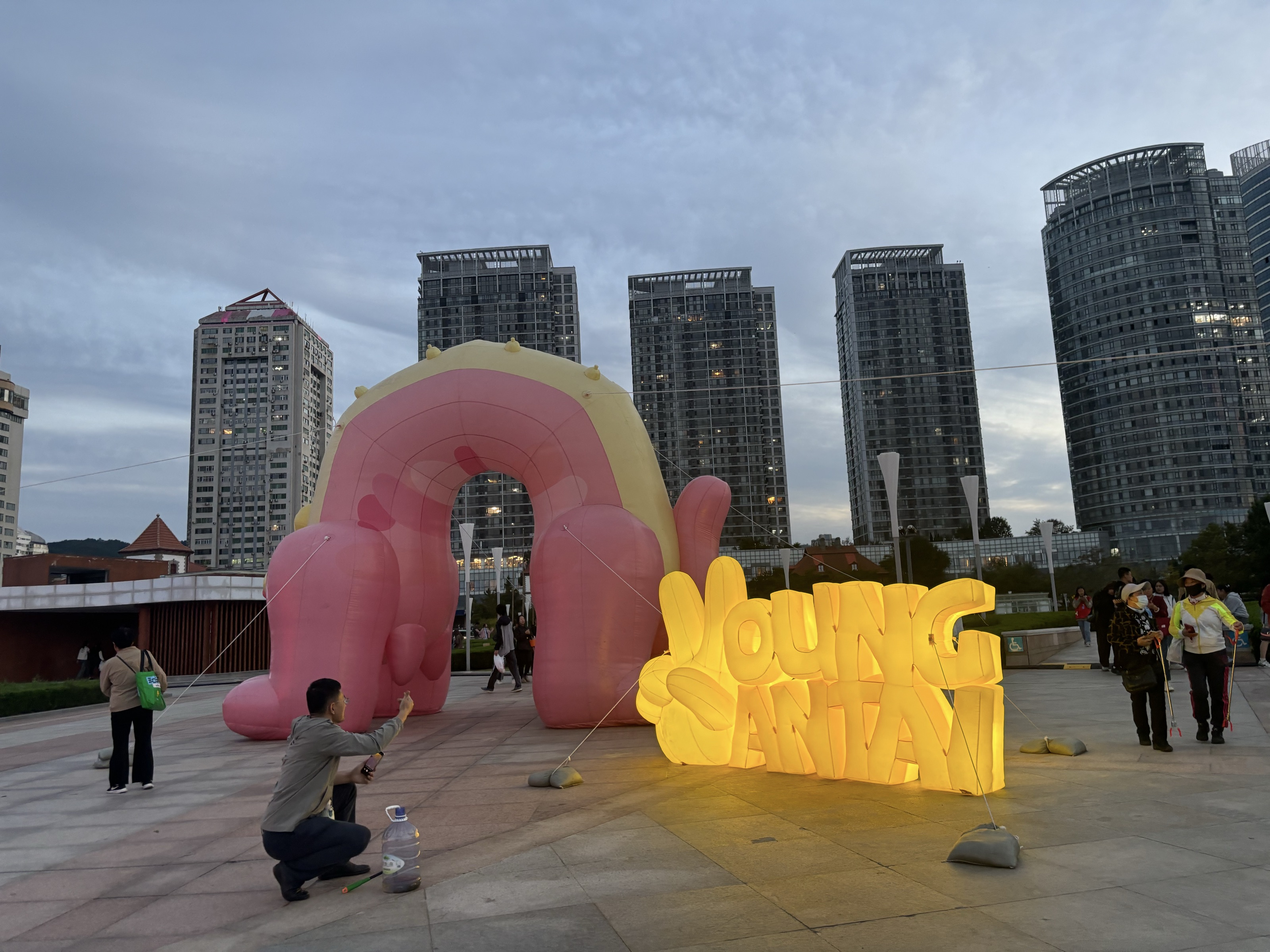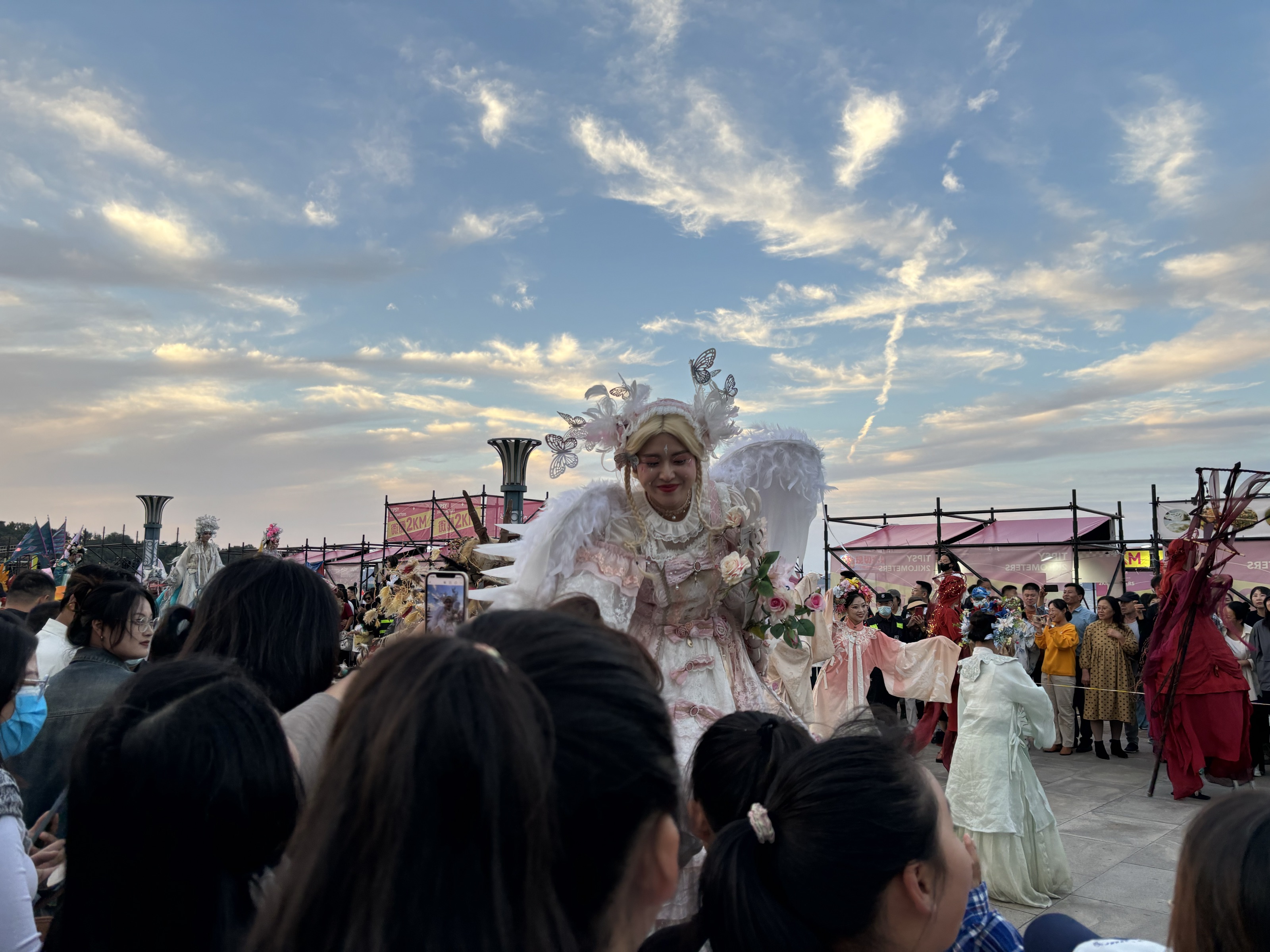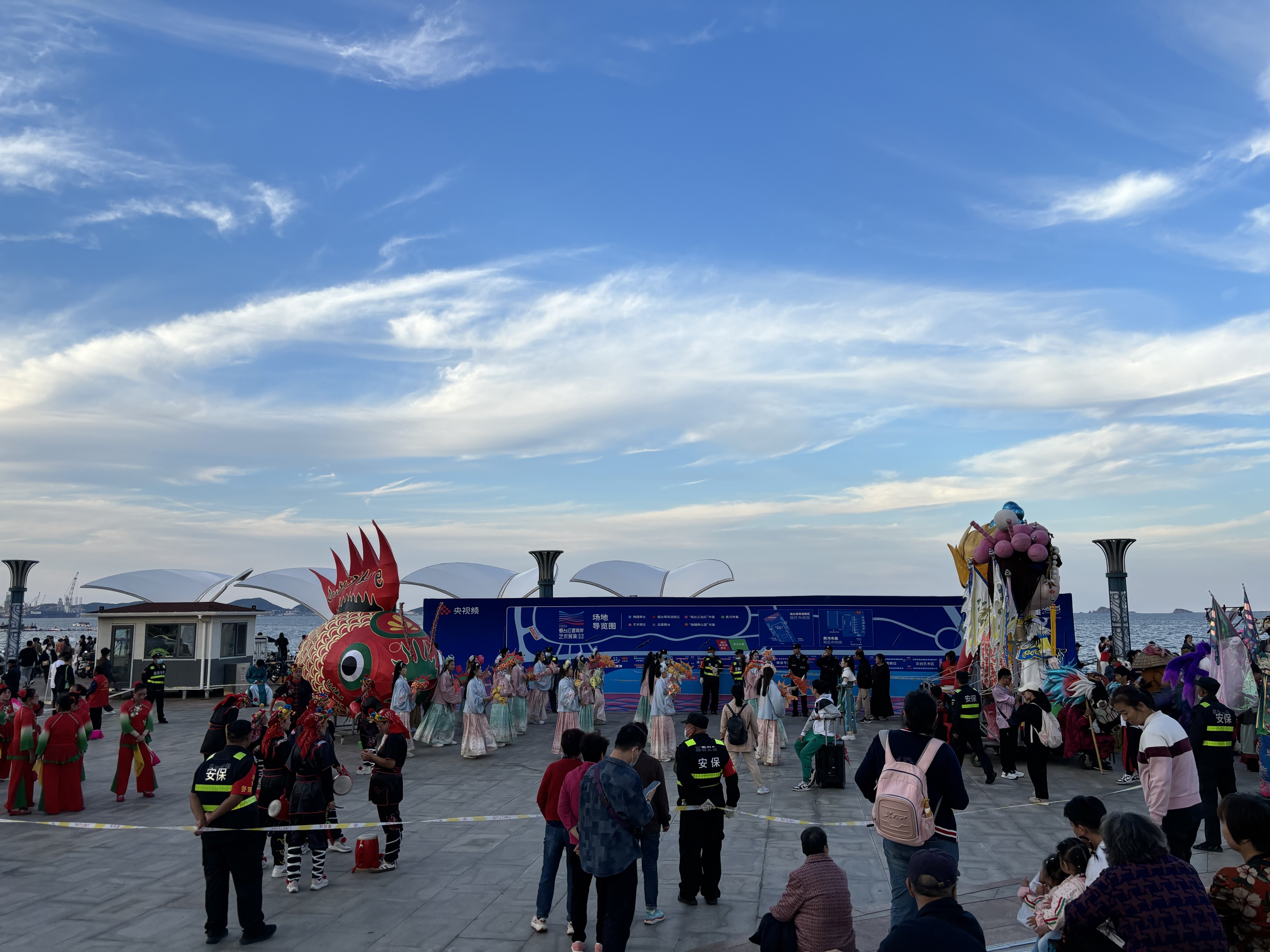 出来张裕博物馆以后往海边走就快到了滨海广场,很巧的是当时正赶上了有活动,还有游行,还有一些表演什么的,还有一个非常大的演唱会的一个场地,后面在抖音上看到是有很多乐队啊,歌手啊,过来唱歌
