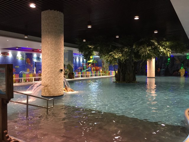 新开的温泉,我都没有找到图片参考。好在从县城出发去花溪沐会在中途一半路程时路过,就去现场看看,硬件设施确实不错就临时改到这里玩。我们去的比较晚,下午六点到的玩到九点半关门。酒店试营业了两个月刚刚正式营业,设施特别新,人很少,所以用户体验超好。室外一个无边泳池,室内一个泳池。儿童戏水池也不错。温泉室内室外都有,细节上每个温泉池的水温没有明显的电子屏显示,晚上看不清木牌上的字,这一点可以改善。从温度来说,可能是东北地区冷或习惯,所有温泉池水问题相对偏高。洗漱用品很全,洗漱地方的服务员态度很好。服务细节方面还有很多可以学习南方温泉度假村的地方,例如泡过很多各地的温泉,只有这里居然没有提供免费的纸杯和茶水。