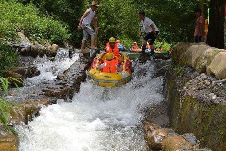 诸暨五泄漂流是一个神奇的漂流,一个能让你漂到睡着的漂流,因为终点和起点的落差竟然为0毫米!全程平静的连水流都感觉不到,不用力划船,估计都漂不到终点!!!这竟然也能叫漂流?太无耻太坑爹了!所谓的丛林探险,就是那个人工开凿出来的水洞吗? 打了点灯光就能算探险?而且洞里的空气很压抑。唯一可以让人有兴奋感的,就是终点的那一个下冲,终于把全程都没弄湿的衣服给弄湿了!!!!
