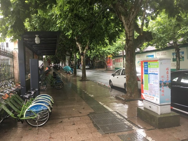 虽然下着大雨,但是街道很干净整洁