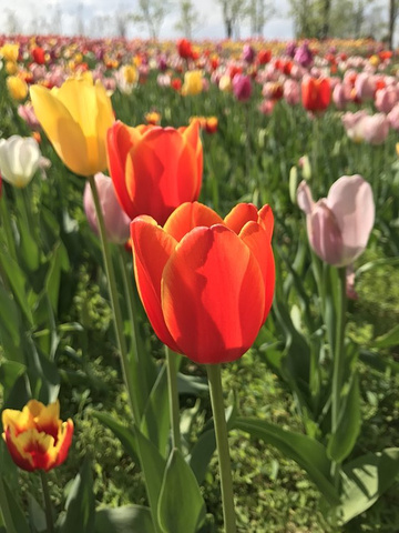趁着郁金香节?,在天气晴好的日子来到了鲜花港赏花,果然不虚此行!这个季节郁金香开的正盛,气温也事宜~景区比较大,所以不会觉得特别拥挤,游览起来还是比较舒适的。景区里有可以租的电瓶车,如果不想走路可以买票上车!景区里景色还是不错的,很多成片德郁金香,五颜六色的,非常漂亮,适合照相!别的景色就没什么了,逛久了会有点审美疲劳~比较适合休闲游。景区停车场10元不限时,景区内有餐饮区,或者自带点东西找板凳坐下吃也是不错的!