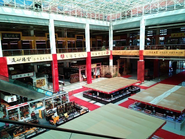 莆田工艺美术城坐落在莆田市黄石镇,有公交车可以直接到工艺美术城大门口,公交车站名为“黄石工艺城”,工艺美术城分为大致对称的两部分,左侧是珠宝中心、玉雕区和石雕区,右侧一层是木雕、二层是红木家具。木雕作品相对较好些。