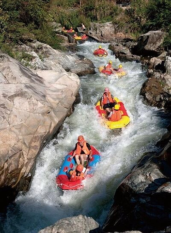 遊覽浮蓋山,除了欣賞其修理獨特的景色,浮蓋山的峽谷漂流,更是十分吸引勇敢的年輕人遊覽浮蓋山,除了欣賞其修理獨特的景色,浮蓋山的峽谷漂流,更是十分吸引勇敢的年輕人。浮蓋山峽谷溪流彎道眾多,落差適中,水流緩急分明,峽谷特徵明顯,是理想的皮筏漂流地。