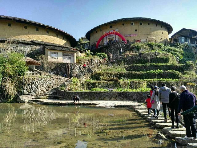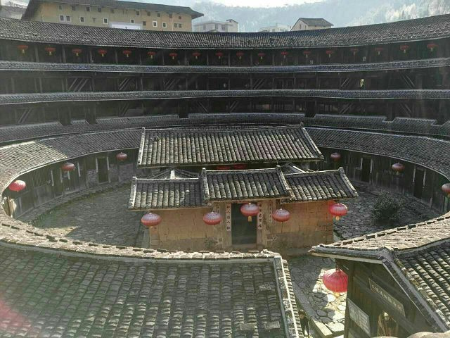 应该说是整个福建所有的土楼古建筑中,这里是最为著名,或者说保存最为完好的,现在已经没有人居住了,只是一个古代村落的一个遗址,但是保存得非常好,基本的建筑都在,可以看到当时整个村子居住在一个建筑里面,而且这个建筑从外观上来看,就像城堡一样,还是非常有特色的,整个的土楼里面各种功能都有,非常的合理。