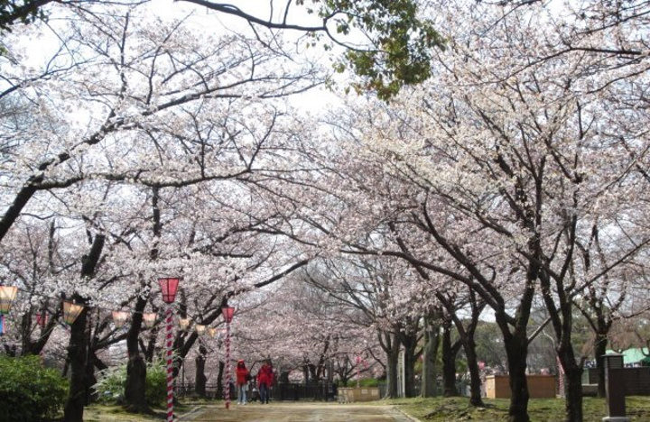 在大阪城西之丸庭园内,一进去 满眼的樱花树,树上花团锦簇,树下游人如织,而背景是典雅而清丽的古建筑,一景一物,皆蕴透着春色春香,亮丽而鲜活,美不胜收!完全进入了花的海洋 不愧为大阪的赏樱好去处!