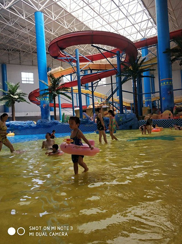 早上十点到的,带着三个孩子从进门到出来一共用了四个小时,里面卫生不错,拖鞋也挺干净,有给泳圈充气的地方,饮水机也有好几个,前台服务特别好,刚去冲浪那边的时候孩子们害怕,后来适应了都玩儿的挺开心的,唯一的缺点就是出来的时候挺冷的,孩子直哆嗦