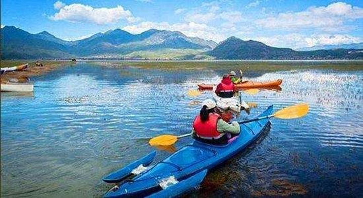 【拉市海新安上马场】~值得一去 拉市海的风景就是这么简单纯粹,低调朴实,但不失唯美,就像低头无语迈步拾山石而上的马儿,就那么一路默默地载着你,让山风亲着你,让马蹄儿和马铃的节奏安抚你的心坎。所以,当你从小舟里走出,肯定会像我一样,仰卧在开满格桑花的岸边,在蓝天白云绿山的覆盖下