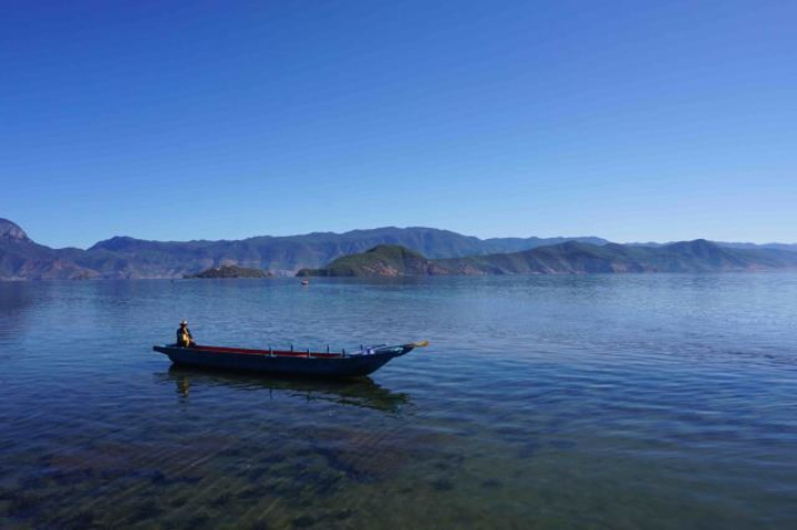 换个角度看泸沽湖又是别样的风情[愉快]划船的阿哥阿妹虽然天天重复着无聊的体力活,可是脸上始终洋...