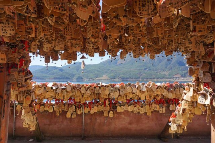 到泸沽湖游玩除了可以包车环湖外,也可以坐上当地的猪槽船游湖,在客栈附近就是三家村码头,从这里坐船可以登上客栈正对面的里务比岛,岛不大,只有一座里务比寺,换个角度看泸沽湖又是别样的风情[愉快]划船的阿哥阿妹虽然天天重复着无聊的体力活,可是脸上始终洋溢着阳光般的笑容