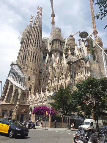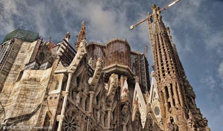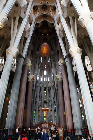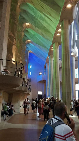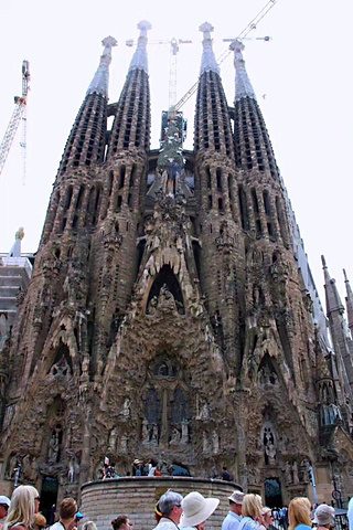巴塞罗那之地标一圣家族大教堂。这座大教堂至今仍在建造之中。由于大教堂雄伟的旷世规模和独特的美学创意,从兴建之初便一直备受瞩目,是全球唯一尚末完工就被列入世界文化遗产的建筑物。它如一座由无数自然元素和抽象符号组成的宗教历史巨型雕塑。教堂的造型象征寓于巴塞罗那的宗教圣地蒙特赛拉石头山,内外皆由石头砌筑。石材雕有棱角,群石耸立,变幻多端与光怪陆离令大自然都要膜拜。长廊两侧的柱子,这里没有直线,正如高迪说的“直线属于人类,曲线属于上帝!”圣家堂是献给上帝的礼物,这些弧线全部取材于自然,海螺、鹅卵石、树叶、昆虫……他们的某一部分都悄无声息的融合在这巨大的建筑里。万花筒一样神秘莫测的天花板。教堂两侧,布满了巨大的落地窗,每天太阳升起,阳光倾斜而下,照射在彩色的玻璃上,五彩斑斓的光线便铺满大教堂,美的极尽虚幻!