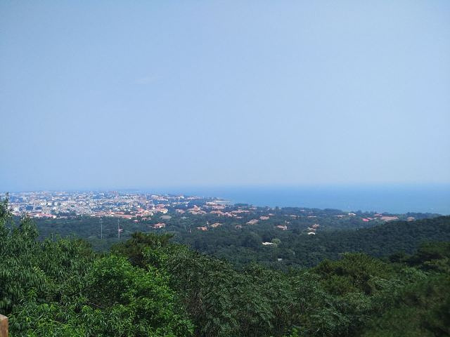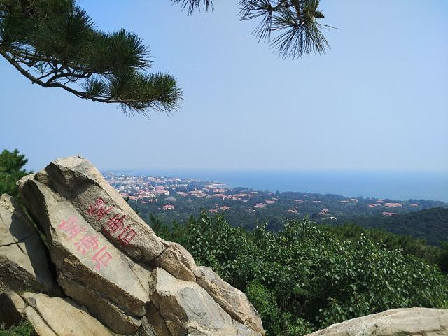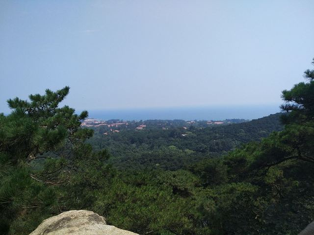 孩子自己登上山顶 看到北戴河海滨的全景 真的很漂亮
