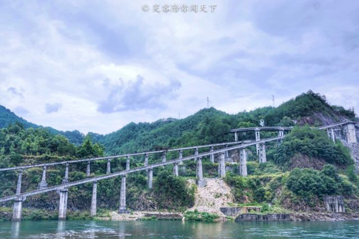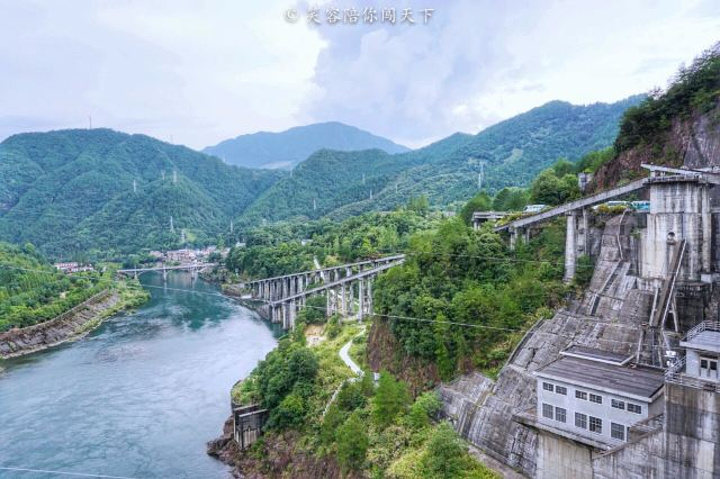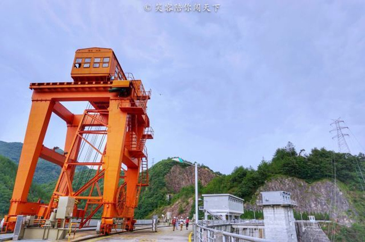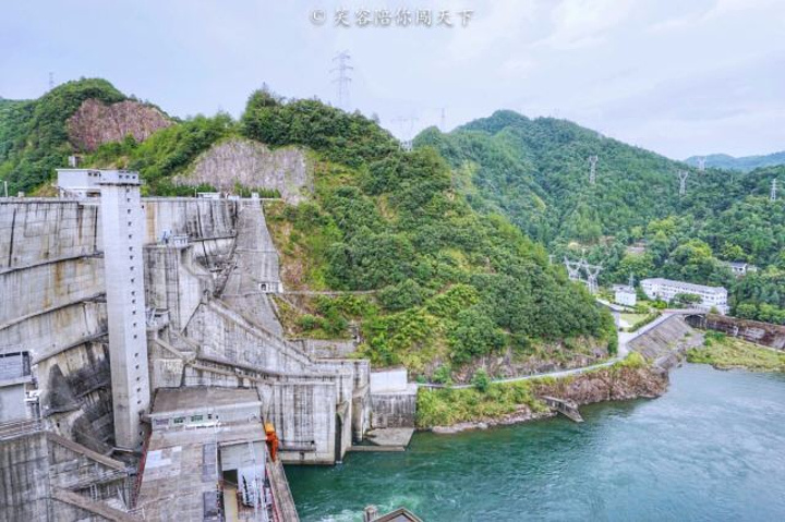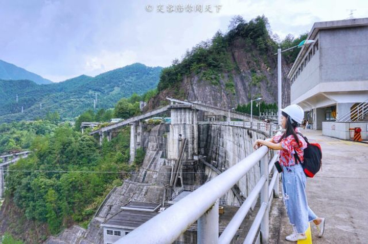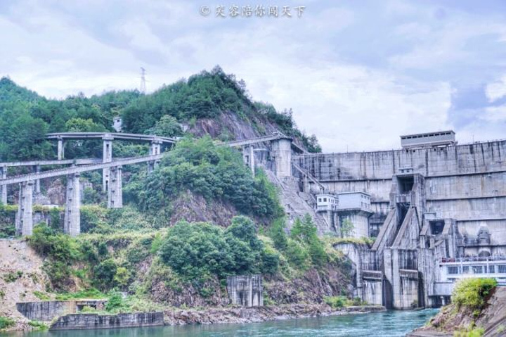云和湖仙宫景区的水电路线之一紧水滩水电站,是国家开发瓯江流域龙泉溪干流梯级发电的第一级水电站,也是全国首座三心双曲拱坝。哪怕不进园,远远的你就能看到感受到这个坝高102米,坝顶弧长378.262米,坝顶宽5米,最大底宽25.74米的大坝的魅力。 但最令人叹为观止的是上升到大坝顶端,从上往下俯视的即视感,冲击力事最强的,所有山河尽收眼底,恐怕胆子小的往下看一定会吓到腿软动弹不可。