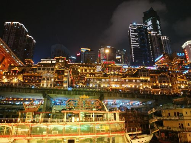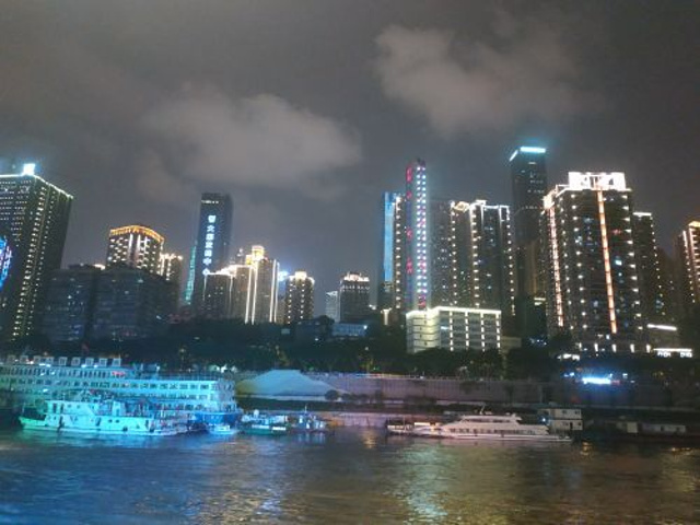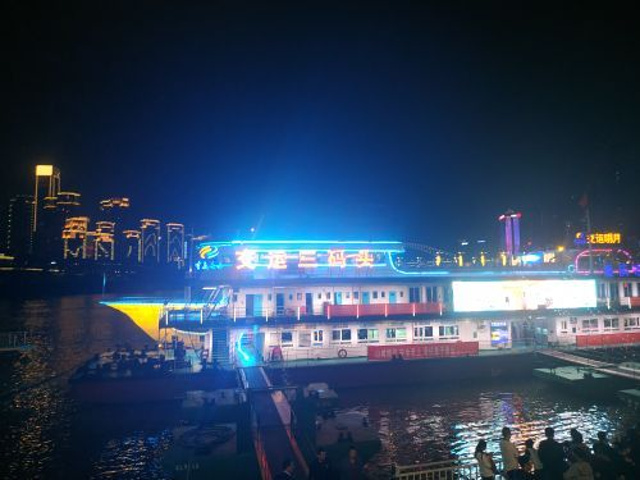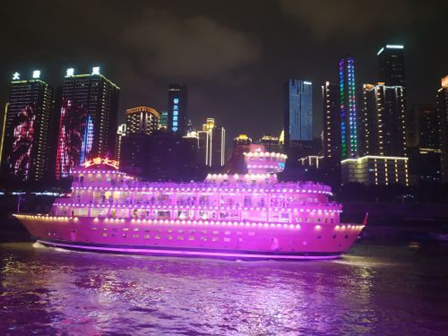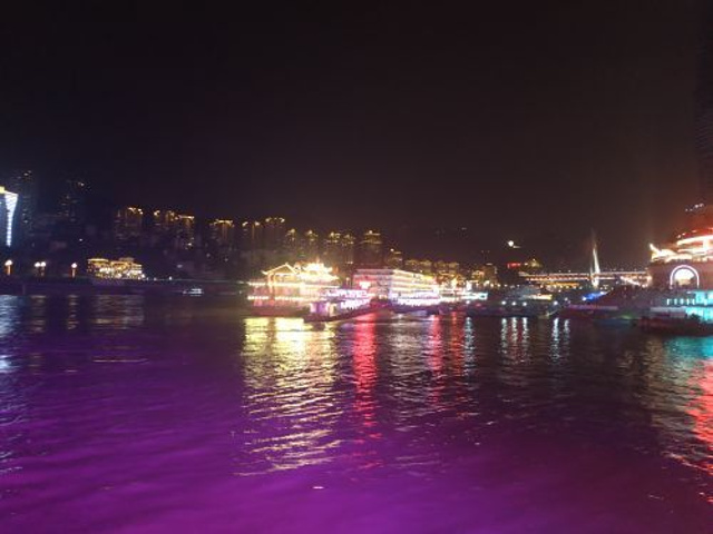 耍得很开心.游船没有其他要钱单的项目,免费上顶层,可以自带吃的,一边吃东西,一边赏玩夜景,安逸得很。小窍门:可以先玩洪崖洞,买些吃的,然后下到底层出口处,往左公交站方向走,不要过马路,然后看到两江游的大巴就招手停,不论是在哪里买的票包括网上,都可以免费搭。如果直接到洪崖洞入口处搭车,人多就要排队,我们绕到这个地方的前面去截车,当第一个上车的乘客。