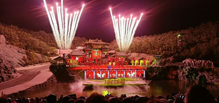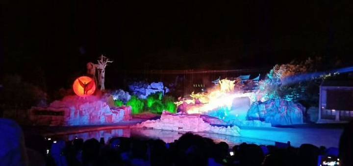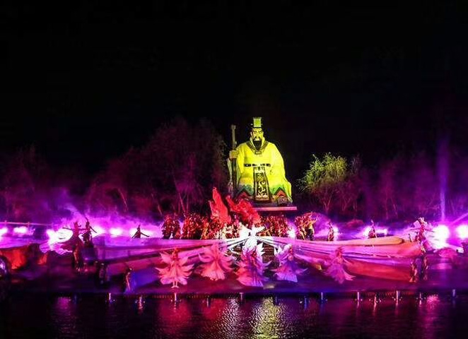 观众坐在一座可以容纳两千多人的可360度旋转的船上,整场演出以华夏民族诞生发展为主线,运用现代高科技声、光、电、影的手法,白天的风景(景点)变成夜晚的场景(帷幕),真山真水展现,分为六个序幕,演出时间为近一个半小时,故事内容一般,但演出方式让人着实震撼,不可错过。建议某宝买票,优惠幅度大一些。