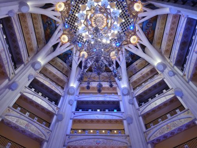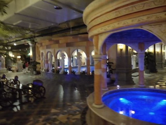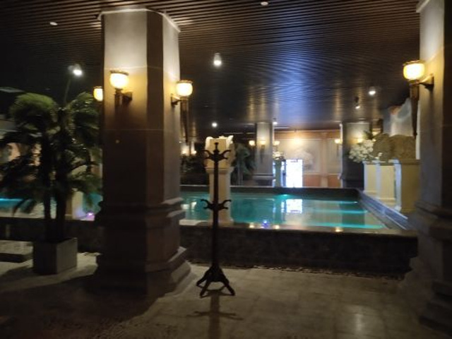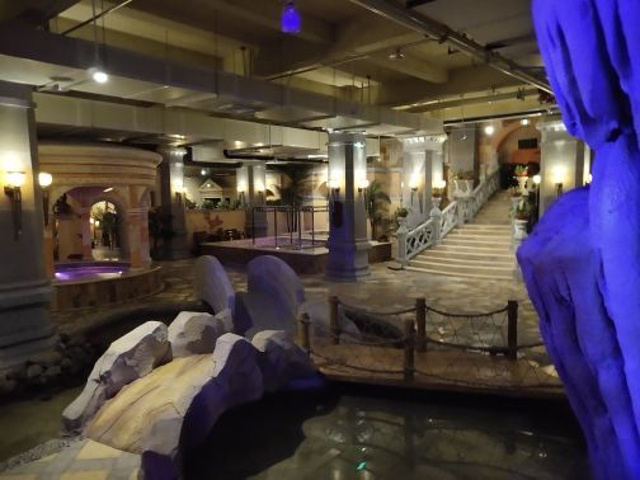 温泉位于蓬莱欧乐堡景区内,在欧乐堡骑士酒店酒店的负一楼,酒店的服务人员配备非常充足,态度很好。 一楼大厅装修非常豪华,而且是骑士主题,酒店非常帅,温泉一共有20,多个池子。 但是不足的是装修味道大,空气流通不畅,没有户外,温泉场,感觉像个大澡堂子。原本打算泡两三个小时,去了一个多小时就觉得非常憋气,撤了。