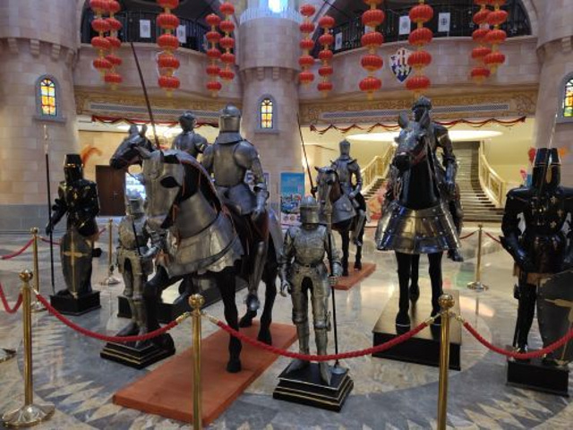 一楼大厅装修非常豪华,而且是骑士主题,酒店非常帅,温泉一共有20,多个池子
