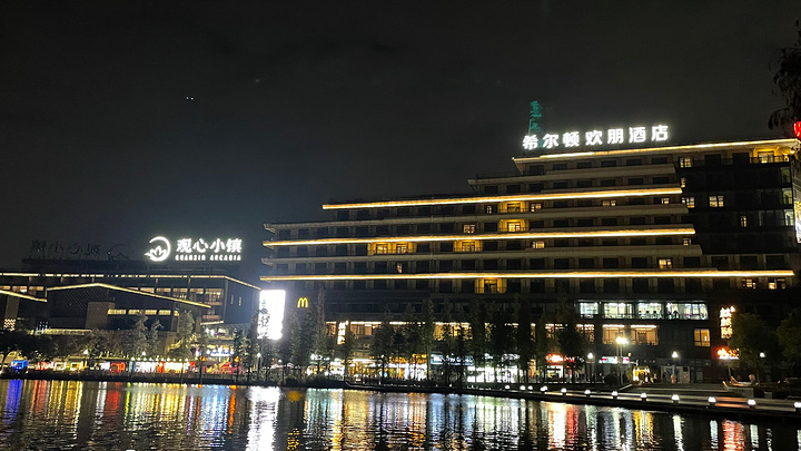位置:佛山市南海区西樵镇锦湖大道2号。 观心小镇,取名之意源于《佛经》“观照内心”。观心小镇,地处广东省佛山市南海区西樵镇,位于国家5A级景区——西樵山西北麓的听音湖片区。建筑设计上采用了返璞归真的古青砖为重要元素,以岭南独有九公分古法砖砌筑的外墙、承继中国传统建筑之美的斜面屋顶为特色,是独具岭南特色的文旅休闲小镇。夜晚的观心小镇仿佛一颗夜明珠在西樵山下显得格外耀眼。餐后可沿湖散步。湖光灯影,美不胜收。