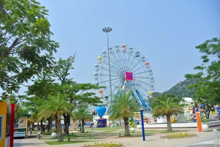 华欣圣托里尼公园是泰国的“小希腊”,是一处结合购物与娱乐概念的旅游景点,不用到希腊也可以感受到梦幻的圣托里尼风情。整座园区的建筑风格完全模仿希腊爱琴海上的小岛圣托里尼,蓝窗白墙的小房子内,是一家家精品小店,漫步其间,犹如置身圣托里尼小岛上,浪漫又惬意。街道区旁的大广场上,矗立着40米高的摩天轮,登上摩天轮升到高空,整个海滩美景尽收眼底。这里也是亲子游胜地,小朋友们一定会玩得不亦乐乎。门票是150珠 交通方面,如果为了省钱推荐大家从华欣市区乘坐420路巴士(Royal Pavilion Huahin酒店门口始发站)前往,车程约40分钟,票价30-40泰铢当然人多的话可以选择包车~ 圣托里尼乐园被称为“小希腊”,一进去,就是梦幻的圣托里尼风情,蓝白色的建筑,完全模仿希腊爱琴海上的小岛圣托里尼,仿如真的到了希腊。