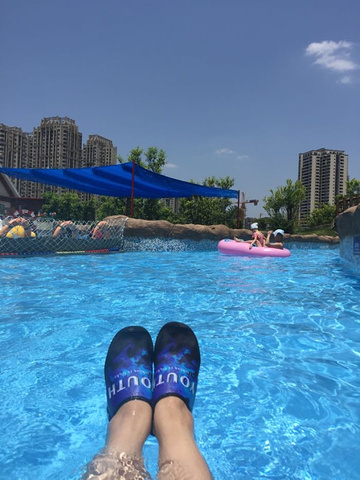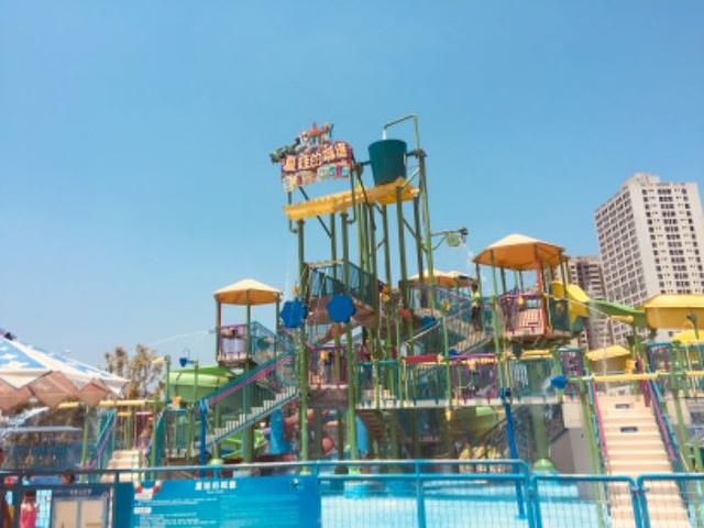 看了很多评论才决定来体验一下,感觉还可以,网上订票直接扫二维码进入,更衣室在进门口楼下负一层,柜子手环押金160,包含租金20,押金20,120元的充值卡用于购买水和餐食,更衣室很大,有热水、洗发水、沐浴液,吹风机等,毛巾需要自带,娱乐项目不多,80斤以上才可以玩,因为带小孩所以没有去体验,带小孩来玩还是可以的,就是自己要带拖鞋,地面温度还是很热的,我是在网上淘的沙滩鞋可以直接下水,拖鞋是不可以下水的,白天人不多,晚上人太多了,但是还是玩得很开心,下次一定还要去。
