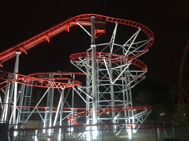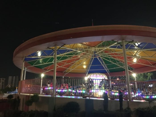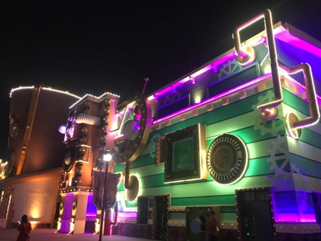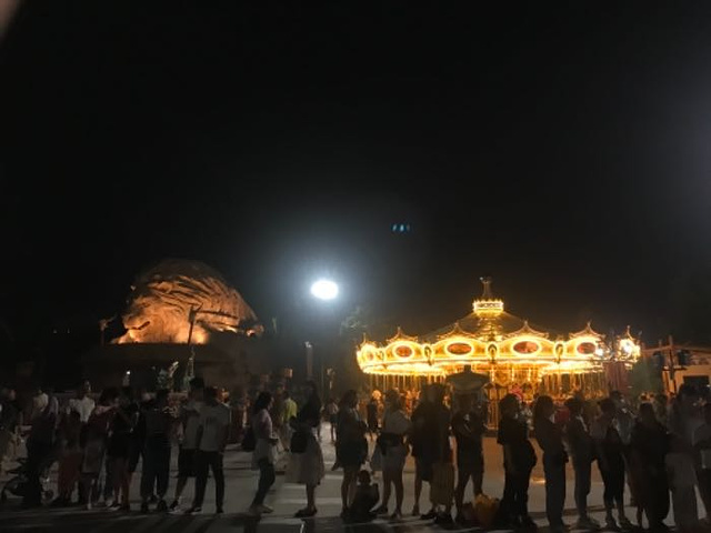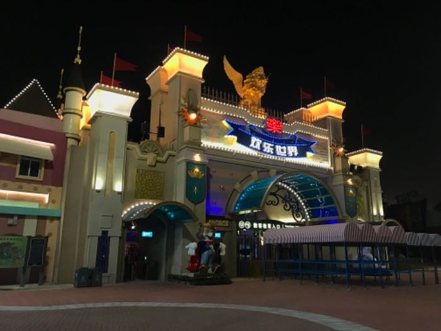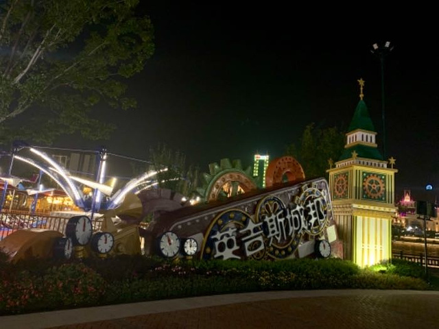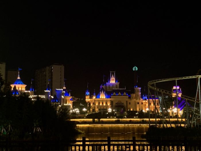 安检员要看苏康码和行程码才能进大门,做好防晒措施,带着小风扇很重要! 乐园整体还不错,值得一玩,吃饭也不贵,可以自带小零食和水,园区有直饮水,有点遗憾的是进去发现想玩的项目没有开。 周末人很多一个项目排队加玩就要浪费半个小时,有体力不急于玩项目的人可以步行,如果有带小孩子或者想快速排队的人可以租车,省时省力! 夜场是下午四点进场,排天空之塔的时候被工作人员告知要拍摄暂时不能玩,看完飞跃丝绸之路出来天就黑了,晚七点天黑以后天空之塔、过山车一类刺激项目就关掉了!晚八点半花车巡游 科普一下好玩的室外项目: 📍山洪大爆发:必要要带雨衣,园区内买10元一次性雨衣,雨衣可自带,哈哈 但也有人享受全身湿透的感觉 📍空中飞舞:离心感很强,悬在半空转圈很刺激,最高12米 📍霹雳游侠:碰碰车,人很多排队时间久 📍风筝飞行器:不刺激,除了趴着有点,一直在转很凉快 📍淘金梦矿山车:还不错,小型过山车,速度是激情的感觉,可以带着孩子一起玩 📍动物大迁徙:旋转木马,晚上玩拍照很出片 📍荣耀之轮:翻转完上下转圈,有点慢,值得一试 📍雄鹰盘旋:大飞椅,飞得很高,很凉爽 征战者过山车、草原飙风、旋风乘骑没开! 天空之塔、马赛回旋过山车排队人多没玩成,但也挺开心的! 室内项目: 全是空调房 小镇鬼影:鬼屋,小胆勿入哈哈 飞跃丝绸之路:最好不要坐第一排,仰着脖子看很累,画质有点不清晰,人多一起热闹,挺有意思 因时间关系,其他室内项目遗憾错过! 所以想玩刺激项目的人切记提前排队玩,最后到室内影院观影!好啦,夜场介绍结束啦,有时间去玩全天🔚