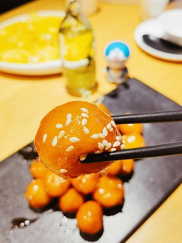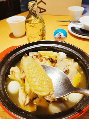 米酒醉鸡煲 满满酒味的鸡肉吃起来酒香味很浓厚,还有点甜甜的感觉。 无鸡不成宴,特精选优质河田鸡,用料讲究,皮黄脆爽,肉香有韧性,酒香四溢,年轻人也喜爱的客家菜 松茸土猪肉汤 喝起来会回甘的猪肉汤,喝起来很温暖。 功夫薰笋 微辣薰香,超级下饭 ,笋干吃起来脆脆的。 荔枝茄球 看起来像糖球一样,真的吃不出是茄子,太有创意了,酸甜开胃,外酥里嫩 。 板栗白菜 第一次吃了娃娃菜与板栗的结合,太有特色,汤汁太特别了,我们是光盘了,就是觉得板栗有点硬。 米酒冰淇淋 客家人最爱的米酒也能做成冰淇淋 ,吃起来冰爽解腻。。 🟡环境部分 打卡"以家人之名“拍摄餐厅,厦门难得一见有品位的客家菜餐厅。楼顶独栋的玻璃屋,清新明亮,却不失客家元素,这是一家时尚风格元素满满的客家菜。