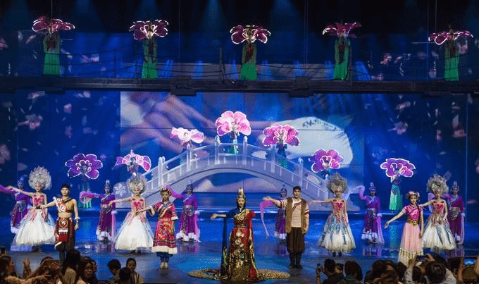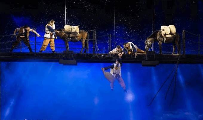 大型歌舞表演《丽江千古情》是我这次丽江之行最期待的一环,在来之前就听说过它的大名,身边不只一个朋友给我推荐过这个表演。 《丽江千古情》结合了许多高端的舞台科技,用IMAX 3D的大片视觉,重现了丽江长达千年的历史和传说。整个演出分为《纳西创世纪》、《泸沽女儿国》、《马帮传奇》、《木府辉煌》、《玉龙第三国》、《寻找香巴拉》六个环节,凝聚了几乎所有的最具代表性的丽江民俗符号和文化元素。整场表演在巨型剧院中上演,这个多达4700个座位的剧院完全成为了高科技舞台技术的试验场。