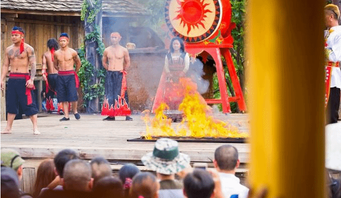 千古情有许多的表演项目,其中有所谓的十大演艺秀,除了《丽江千古情》和《丽江恋歌》之外,还有《木府招婿》、《爬花楼》、《穿越快闪》、《笑擒刘一刀》、《风雅阁》、《上刀山下火海》、《命悬一线》、《木府点兵》等。看完《笑擒刘一刀》之后,我接着去看了《上刀山下火海》,非常刺激啊有木有,而且人太多了直接把我挤到了后面。