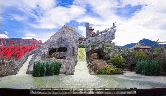 千古情景区里面的内容非常丰富,今天一天我都将在这里度过。整个景区主要包含了茶马古街、那措海、雪山沙滩、各种云南少数民族村落、千古情广场、大型室内科技游乐综合体等主题区域,此外还有两场大型的演出分别是前文提到的室内大型歌舞剧《丽江千古情》以及露天大型实景表演《丽江恋歌》。